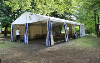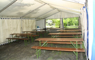 Interessierte Mieter können das Zelt inclusive Festzeltgarnituren bei uns für einen attraktiven Preis ausleihen.